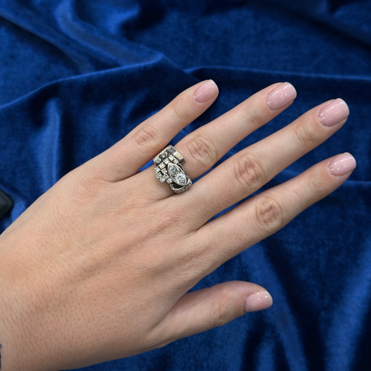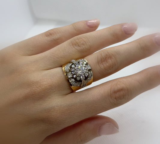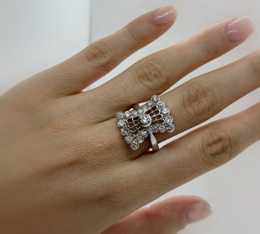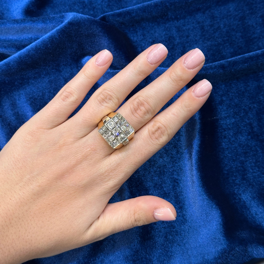 Anello rettangolare anni '30 in oro giallo e diamanti