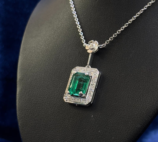 Collana anni '90 in oro bianco con smeraldo e diamanti