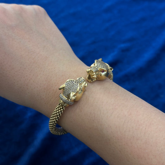 Bracciale pantera anni '60 in oro giallo, diamanti e rubini