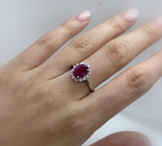 Anello cestino anni '70 in oro bianco con rubino e diamanti